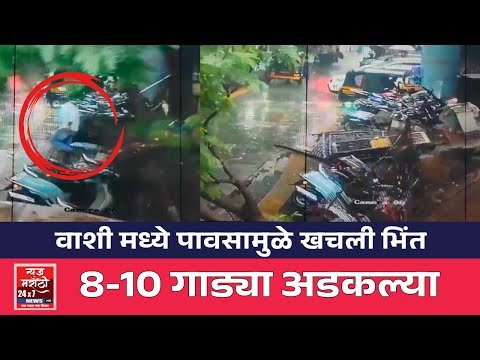 नवी मुंबईतील वाशी मध्ये पावसामुळे खचली भिंत ; 8-10 गाड्या अडकल्या ; तर धडकी भरवणारा सीसीटीव्ही समोर #marathinews #newsmarathi #news24marathi #newsmarathi24x7