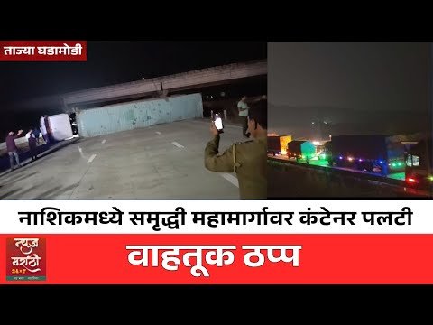 नाशिकमध्ये समृद्धी महामार्गावर कंटेनर पलटी; नागपूरकडे जाणारी वाहतूक ठप्प #marathinews #newsmarathi #news24marathi #newsmarathi24x7