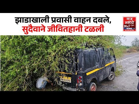 झाडाखाली प्रवासी वाहन दबले, सुदैवाने जीवितहानी टळली #marathinews #newsmarathi #news24marathi
