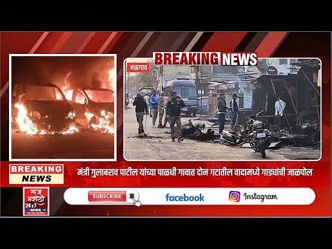 मंत्री गुलाबराव पाटील यांच्या पाळधी गावात दोन गटातील वादामध्ये गाड्यांची जाळपोल #marathinews #newsmarathi #news24marathi