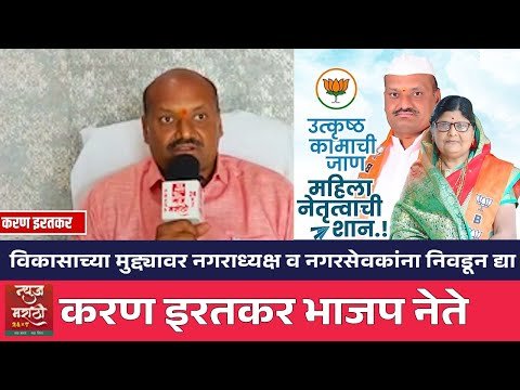 विकासाच्या मुद्द्यावर भारतीय जनता पार्टीच्या नगराध्यक्ष व नगरसेवकांना निवडून द्या... करण इरतकर भाजप नेते #marathinews #newsmarathi #news24marathi #newsmarathi24x7